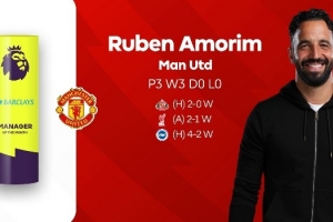 阿莫林成為了第6位獲得英超月度最佳主帥的葡萄牙教練,此前有努諾、穆里尼奧、博阿斯、布魯諾-拉熱以及佩雷拉。