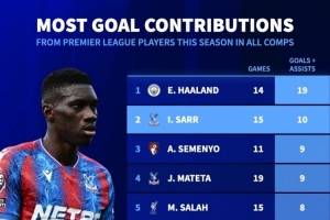 體育資訊11月7日訊 德國轉(zhuǎn)會(huì)市場統(tǒng)計(jì)了英超球員本賽季各賽事的參與進(jìn)球數(shù)量,并列出榜單,哈蘭德參與19球居首,薩爾參與10球次席。