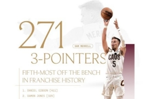 體育資訊11月8日訊 騎士官方發(fā)布紀(jì)錄,梅里爾以替補身份命中率271記三分,超越科沃爾排名騎士隊史第五。