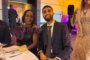 在大約100人的賓客名單中,只有少數(shù)人真正上前與希拉交談。她只會說很少的英語,愿意交流且非常友好,但不愿詳細談?wù)撍膬鹤印_@種謹慎顯而易見。但曾做過服務(wù)員的希拉很放松,愉快地與賓客們共舞。