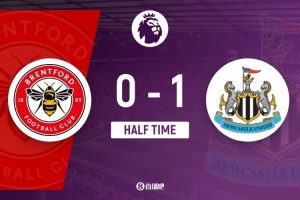 傷停補(bǔ)時5分鐘。上半場比賽結(jié)束,布倫特福德0-1紐卡斯?fàn)柭?lián)。