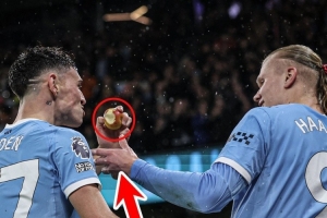 據(jù)ESPN報(bào)道,多庫(kù)在比賽中破門(mén)之后,哈蘭德和福登吃蘋(píng)果慶祝進(jìn)球。