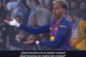 根據Movistar鏡頭顯示,被塞爾塔攻入他們的第一球后,亞馬爾顯得有些不滿,他向隊友們問道:“我們的中場在干什么?”隨后,他與一些隊友進行了交流,試圖找到改進的方法。類似的情況在比分變成2-2后再次出現,DAZN的鏡頭似乎捕捉到了亞馬爾似乎在提醒隊友們防線壓得太靠上,應該稍微往后退。