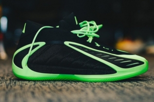 這是一雙熒光綠/黑色配色的AE 2,熒光綠部分還自帶夜光屬性。