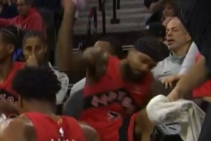 “很多人都認(rèn)為他應(yīng)該站起來道歉。我理解他的沮喪,他在比賽中摔倒得很尷尬,而且那是一場(chǎng)艱難的比賽,他們有很多失誤,最終沒能贏得比賽。但我不認(rèn)為這是正確的回應(yīng)方式。有人說他像三歲小孩一樣,確實(shí)如此,這種事情經(jīng)常發(fā)生在有小孩的家庭里。但我認(rèn)為這不是合適的反應(yīng)。他應(yīng)該對(duì)此道歉,但他沒有這樣做,沒有任何反應(yīng)。我不知道他當(dāng)時(shí)是怎么想的,但作為一個(gè)普通人,我認(rèn)為他應(yīng)該有所表示。他不應(yīng)該坐在那里看著大家清理,尤其是當(dāng)水濺到隊(duì)友臉上時(shí)。他應(yīng)該幫助清理,而不是讓別人的生活變得更加困難。也許這是因?yàn)樗浅?jí)富豪,覺得這些人理應(yīng)為他服務(wù)。但我們不應(yīng)該輕易下結(jié)論。他看起來非常沮喪,可能只是心情不好而已。”Donnie Freeman表示。