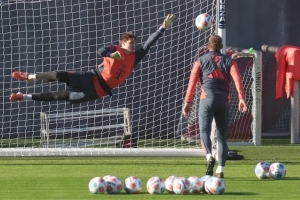 該媒體透露,這位替補門將與兩位門將教練米夏埃爾·雷希納(45歲)和安德烈亞斯·勒斯?fàn)枺?7歲)陪伴下在今日進(jìn)行加練。