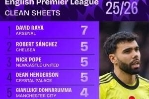 拉亞7場零封是本賽季英超門將最多,杜布拉夫卡46次撲救最多