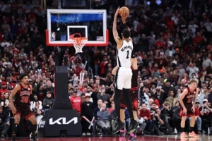 馬刺第四節(jié)一度落后13分。前三節(jié)公牛籃下24投17中。文班亞馬只手難遮天。第三節(jié)尾聲差兩分,然而科內(nèi)特內(nèi)切、多孫穆罰球、瓊斯和史密斯輪流穿刺,馬刺籃下被打穿。