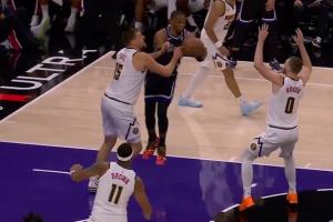 GIF-威少傳球砸腳 掘金四人攤手