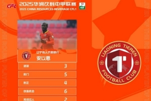 體育資訊11月12日訊 上演帽子戲法的遼寧鐵人球員安以恩,當(dāng)選為中甲聯(lián)賽第30輪最佳球員。