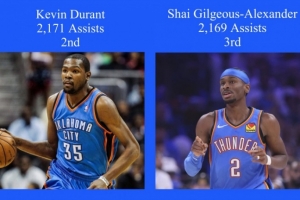 本場比賽賽前,亞歷山大在雷霆隊的總助攻數(shù)為2169次,杜蘭特為2171次(不包括超音速時期)。本場比賽,亞歷山大大概率將會過杜蘭特,成為雷霆隊史助攻第二多的球員。