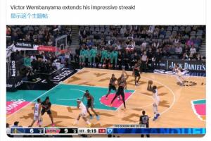文班蓋帽追夢三分后,已連續(xù)96場比賽有蓋帽進(jìn)賬。