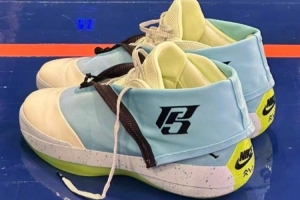 本場(chǎng)比賽班凱羅還上腳了一款特殊版本的個(gè)人PE球鞋,這雙Air Jordan40 Hybrid“4028”PE,融合了最新款的AJ40和之前的鞋款A(yù)J 28,將兩者相結(jié)合推出的一款特殊鞋款。