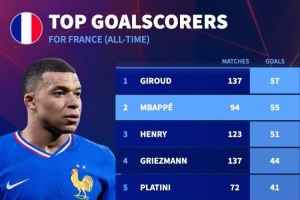 體育資訊11月14日訊 世預(yù)賽歐洲區(qū)比賽,姆巴佩梅開二度,法國(guó)主場(chǎng)4-0擊敗烏克蘭。姆巴佩為法國(guó)隊(duì)攻入55球,差2球追平隊(duì)史射手王吉魯。