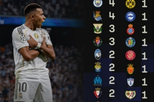 Sofascore也盤點了姆巴佩皇馬生涯50球的分布,其中對陣巴薩打進(jìn)5球最多,對陣曼城、塞爾塔、皇家社會均是打進(jìn)4球,對陣巴拉多利德、萊加內(nèi)斯打進(jìn)3球,此外對陣亞特蘭大等球隊打進(jìn)2球。