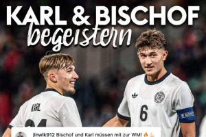 此役,來自拜仁的雙子星卡爾和比朔夫貢獻了極佳的表現(xiàn):17歲的卡爾首次入選德國U21,本場比賽貢獻2球。20歲的比朔夫更是擔任德國隊的場上隊長,貢獻3球1助。在數(shù)據(jù)機構(gòu)Sofascore的賽后評分中,二人均得到了10分滿分。
