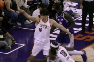 GIF-楊瀚森上籃被馬盧阿奇干擾