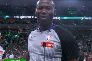 “我們都沒(méi)看到是誰(shuí)出界,判罰結(jié)果是隨便來(lái)兩個(gè)人(any two)中圈跳球。雄鹿對(duì)這球提出了挑戰(zhàn)。”