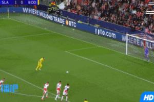 比賽第54分鐘,博德閃耀獲得一個(gè)點(diǎn)球,但霍格主罰的點(diǎn)球被布拉格門(mén)將斯坦尼克神勇?lián)涑?,錯(cuò)失扳平比分的良機(jī)!
