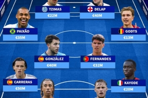 后衛(wèi):卡拉雷斯(西班牙,5000萬(wàn))、約羅(法國(guó),5500萬(wàn))、薩姆·別克馬(荷蘭,2800萬(wàn))、卡約德(意大利,2000萬(wàn))