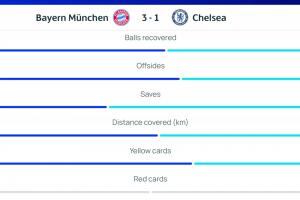 本場比賽拜仁全隊跑動距離121.6km,切爾西112.5km,藍軍少跑了9.1km。