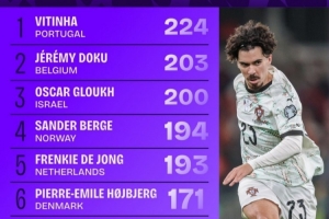 體育資訊11月20日訊 本屆世歐預(yù)小組賽已經(jīng)告一段落,squakwa也統(tǒng)計(jì)了本屆賽事在進(jìn)攻三區(qū)的成功傳球情況,維蒂尼亞居首。