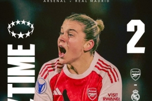 此役上半場卡羅琳·威爾為皇馬女足先拔頭籌,下半場阿萊西婭·魯索連進(jìn)兩球,最終阿森納女足2-1逆轉(zhuǎn)皇馬女足。