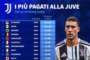 體育資訊11月20日訊 德國(guó)轉(zhuǎn)會(huì)市場(chǎng)統(tǒng)計(jì)了尤文球員的稅前年薪,并列出前二十名榜單,弗拉霍維奇2220萬(wàn)歐居首,戴維1110萬(wàn)歐次席。