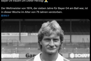 在官方公告中,勒沃庫森聲明:“俱樂部對迪特·赫爾佐格的逝世表示哀悼! ??他曾效力于勒沃庫森7年,這位1974年世界杯冠軍隊成員于本周去世,享年79歲。”
