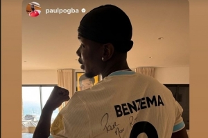 體育資訊11月21日訊 博格巴更新社媒動態(tài),曬出身穿本澤馬球衣的照片。