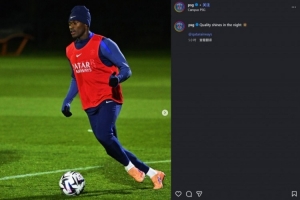 體育資訊11月21日訊 巴黎官方社媒曬照,努諾·門德斯參加訓(xùn)練。
