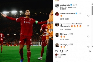 范迪克也在個人社媒曬出慶祝進球照片,配文寫道:“努力追求偉大!”