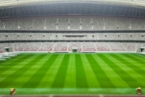 11月7日起,場內(nèi)進行冬季草鏟除工作開始,全場冬季草按區(qū)域依次鏟除,板結(jié)層處理,覆沙找平一氣呵成,草卷鋪設(shè)準備到位。11月8日起,夏季草卷陸續(xù)到達場館,專業(yè)團隊連夜開展草坪卸貨和全場鋪設(shè)施工。11月10日18時,西安國際足球中心草坪更換施工順利結(jié)束。
