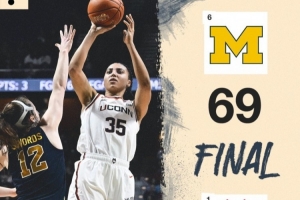 體育資訊11月22日訊 NCAA常規(guī)賽,康涅狄克大學(xué)女籃72-69險勝密歇根大學(xué)。
