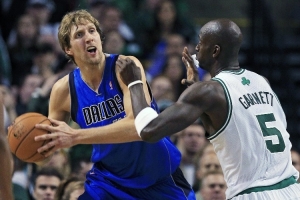 2002年季后賽首輪,小牛3-0橫掃森林狼,諾維茨基場(chǎng)均33.3分15.7籃板3搶斷,加內(nèi)特場(chǎng)均24分18.7籃板5助攻。