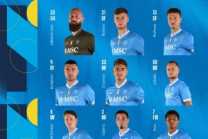 那不勒斯首發(fā):32-瓦尼亞·米林科維奇、31-別克馬、13-拉赫馬尼、4-布翁喬爾諾、22-迪洛倫佐、68-洛博特卡、8-麥克托米奈、3-米格爾·古鐵雷斯、7-內(nèi)雷斯、19-霍伊倫、70-諾阿·朗