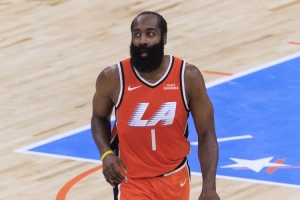 全場比賽,快船球星哈登出戰(zhàn)35分鐘,26中17,三分16中10得到55分3板7助攻1搶斷。