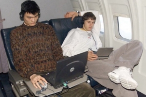 美媒寫道:2002年,姚明在球隊(duì)飛機(jī)上玩《過山車大亨》,而波斯簡-納赫巴在一旁看電影。