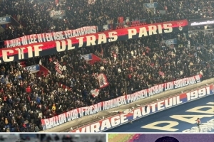 巴黎球迷此役拉出橫幅,祝賀李剛仁(亞足聯(lián)最佳國際球員)和阿什拉夫(非洲足球先生)獲獎。