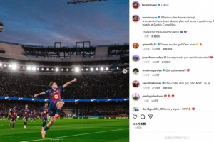 費(fèi)爾明也在賽后通過社媒曬出自己的激情慶祝照,并配文:“多么精彩的巴薩回家之戰(zhàn)!能在諾坎普球場出場并進(jìn)球,簡直像做夢(mèng)一樣!感謝巴薩球迷的支持!”