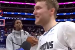 賽后,灰熊球員卡姆·斯潘塞接受采訪,莫蘭特插入對(duì)話,說道:“告訴他們今晚最好的射手是誰,不是來自金州的那個(gè)家伙。(指克萊)”
