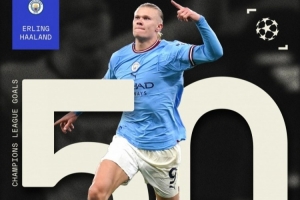 哈蘭德也成為第10位達成歐冠50球成就的球員。