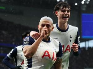 體育資訊11月24日訊 英超第12輪的北倫敦德比,熱刺在酋長球場挑戰(zhàn)阿森納。本場比賽,在球隊0-3落后的情況下,里沙利松為熱刺打進1球,而且是一粒驚天吊射。
