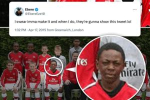 埃澤8歲就進入阿森納青訓體系,13歲離開槍手。如今重回母隊的他,在個人首次北倫敦德比中就用一記帽子戲法兌現(xiàn)了自己當初許下的諾言。