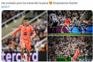 佩德里社媒曬出比賽照片,配文:“雖然過程很艱難,但一切都值得??我們強(qiáng)勢開局!”