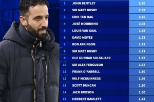 體育資訊11月25日訊 《轉會市場》統(tǒng)計了阿莫林執(zhí)教第一年在老特拉福德的場均拿分情況,1.43分僅能位列隊史第16位。