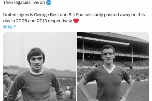 體育資訊11月25日訊 曼聯(lián)官方發(fā)文,紀(jì)念在11月25日離世的喬治·貝斯特以及比爾·福克斯。