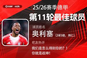 第十一輪評選結(jié)果結(jié)出爐,奧利塞2射3傳超神表現(xiàn),幫助拜仁讓2追6擊敗弗萊堡,獲得吧友超4.2萬票支持。奧利塞毫無懸念當選【體育資訊X小紅書德甲第11輪最佳球員】!