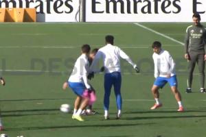 體育資訊11月25日訊 皇馬歐冠賽前訓(xùn)練,阿隆索加入球隊(duì)搶圈游戲。