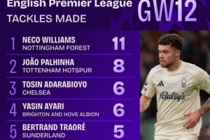 值得一提的是,11次成功搶斷既是諾丁漢森林升上英超之后的單場(chǎng)搶斷紀(jì)錄,也是本賽季英超球員單場(chǎng)最多。